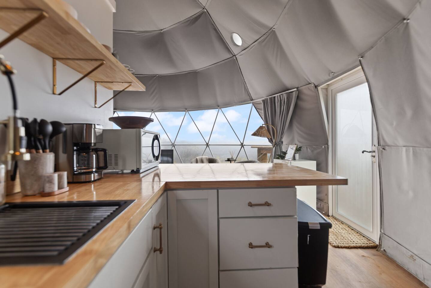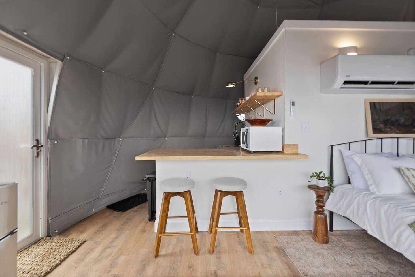 Bluegrass Bluff offers an upscale glamping experience along the scenic Stanton ridgeline. This newly-built dome combines modern design with earthy textures to create a peaceful and inviting retreat. Located just 20 minutes from Natural Bridge State Park in Daniel Boone National Forest. Come hike, climb, and explore the good ole’ outdoors!