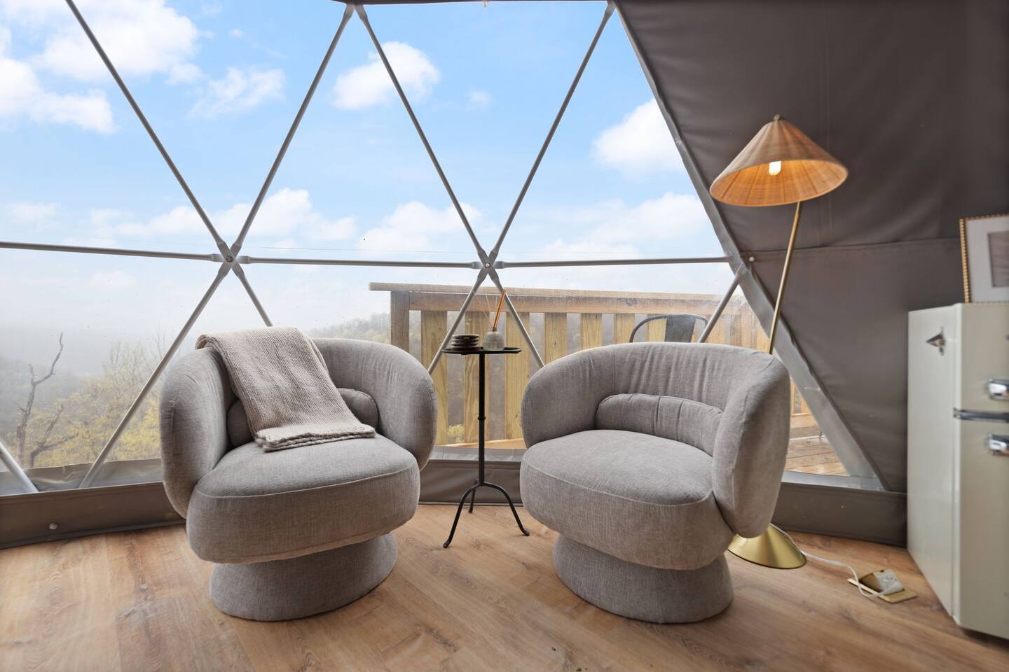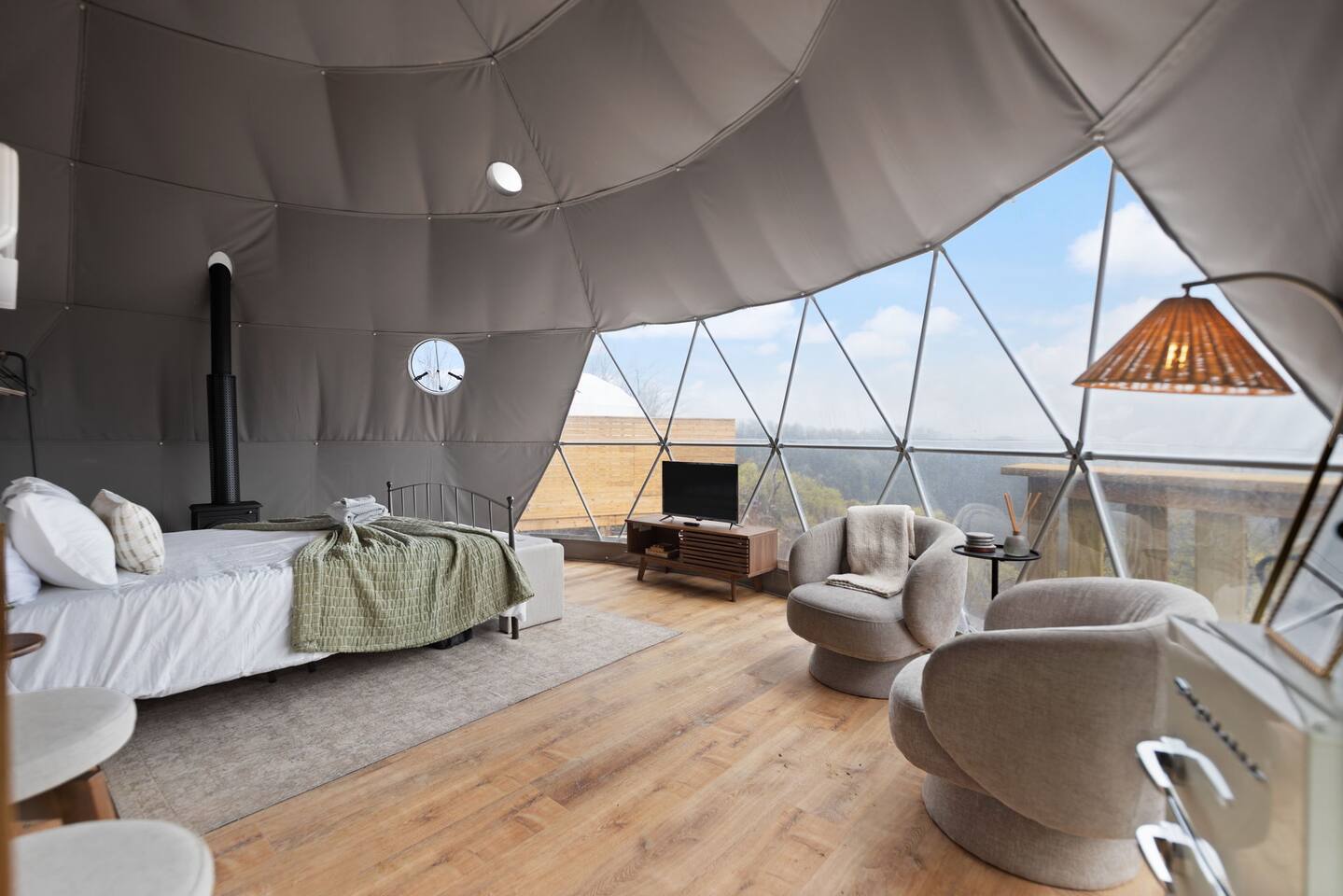 Hickory Heights combines elegance with a modern edge in a thoughtfully crafted dome stay. Nestled along a ridge near Red River Gorge, it offers vast views, upscale comfort, and direct access to nature. Only 20 minutes from Natural Bridge—perfect for those seeking rest and adventure.