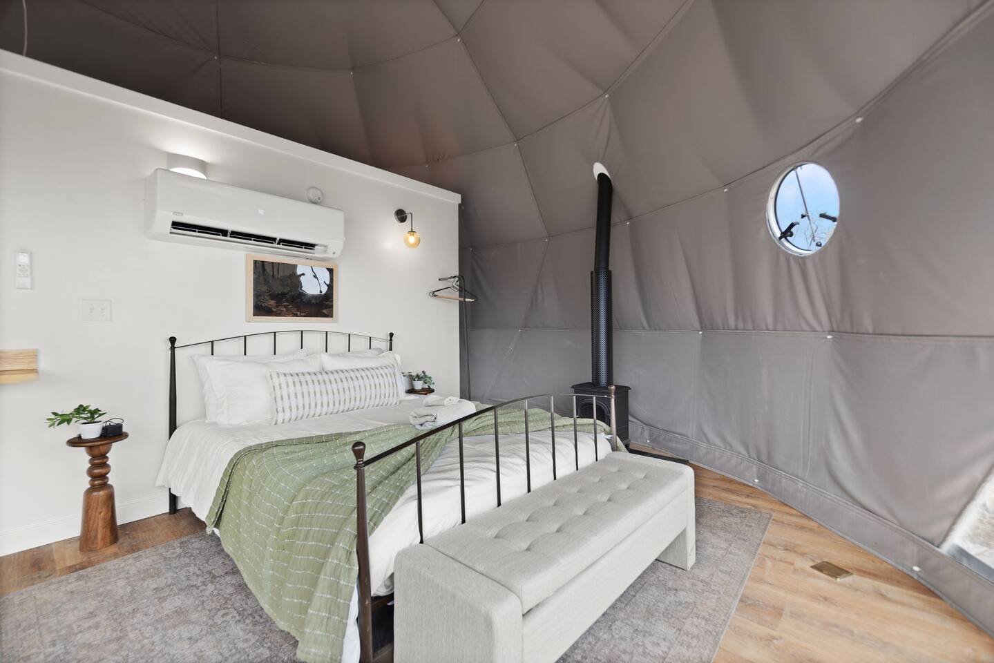 The Overlook is a ridge-top escape featuring six upscale glamping domes, each designed for two guests. Bluegrass Bluff, Cardinal Crest, Hickory Heights, Pineview Peak, Cloud Chaser, and Sunrise Summit—plus Cabin Black Hawk; if your preferred dates aren’t available, you can click our host profile to explore the other listings. Nestled in the hills of Stanton near Red River Gorge, this newly-developed retreat blends modern comfort with earthy charm. With sweeping views, peaceful surroundings, and easy access to and from.